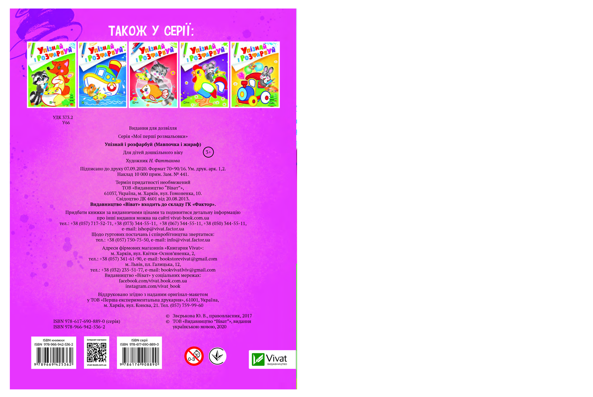 Книга Упізнай і розфарбуй(Мавпочка і жираф) — худ. Фаттахова Н.