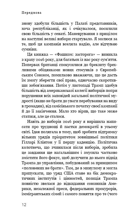 Наприкінці 1980-х років, коли закінчилася Холодна війна, багато хто, зокрема й колишня держсекретар США Мадлен Олбрайт, вважав, що демократія політично перемогла раз і назавжди. Однак майже через 30 років репресивна й руйнівна сила постала знову на глобальній арені — по всій Європі, частинах Азії та США — що на думку Олбрайт, схоже на фашизм.