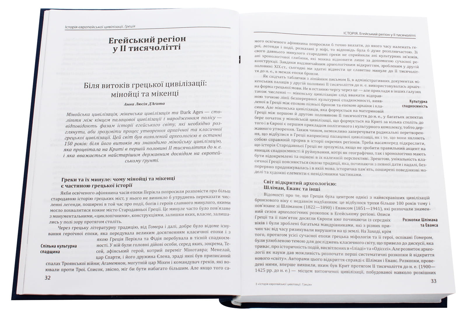 Том «Історія європейської цивілізації. Греція» постає як сучасна енциклопедія, що всебічно висвітлює політичний, воєнний і культурний розвиток Стародавньої Греції — від зародження палацової фази мінойської цивілізації (близько 2000 року до н. е.) до завершення Ахейської війни у 146 році до н. е., яка стала останньою спробою відкритого повстання проти Риму.