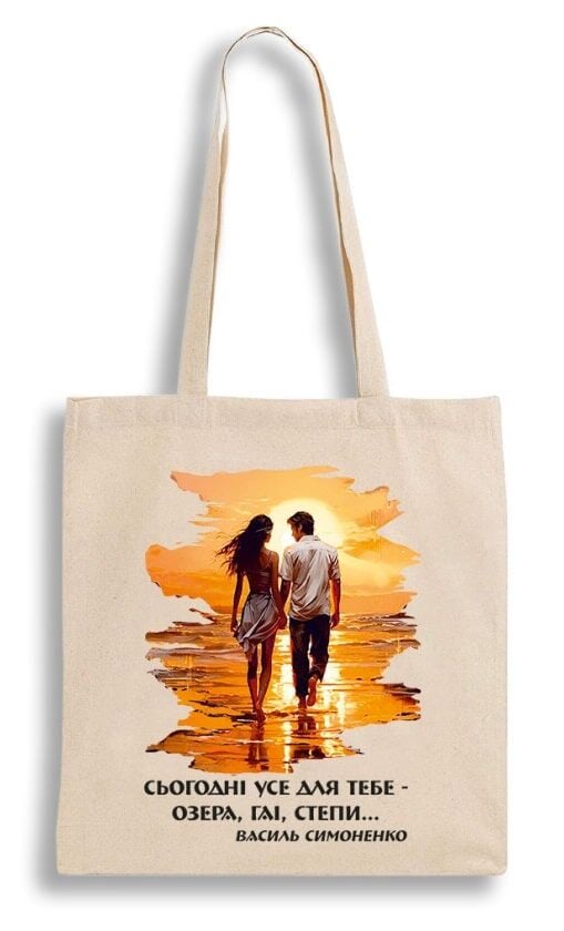 Екошопер бежевий «Василь Симоненко: Сьогодні усе для тебе – озера, гаї, степи...»