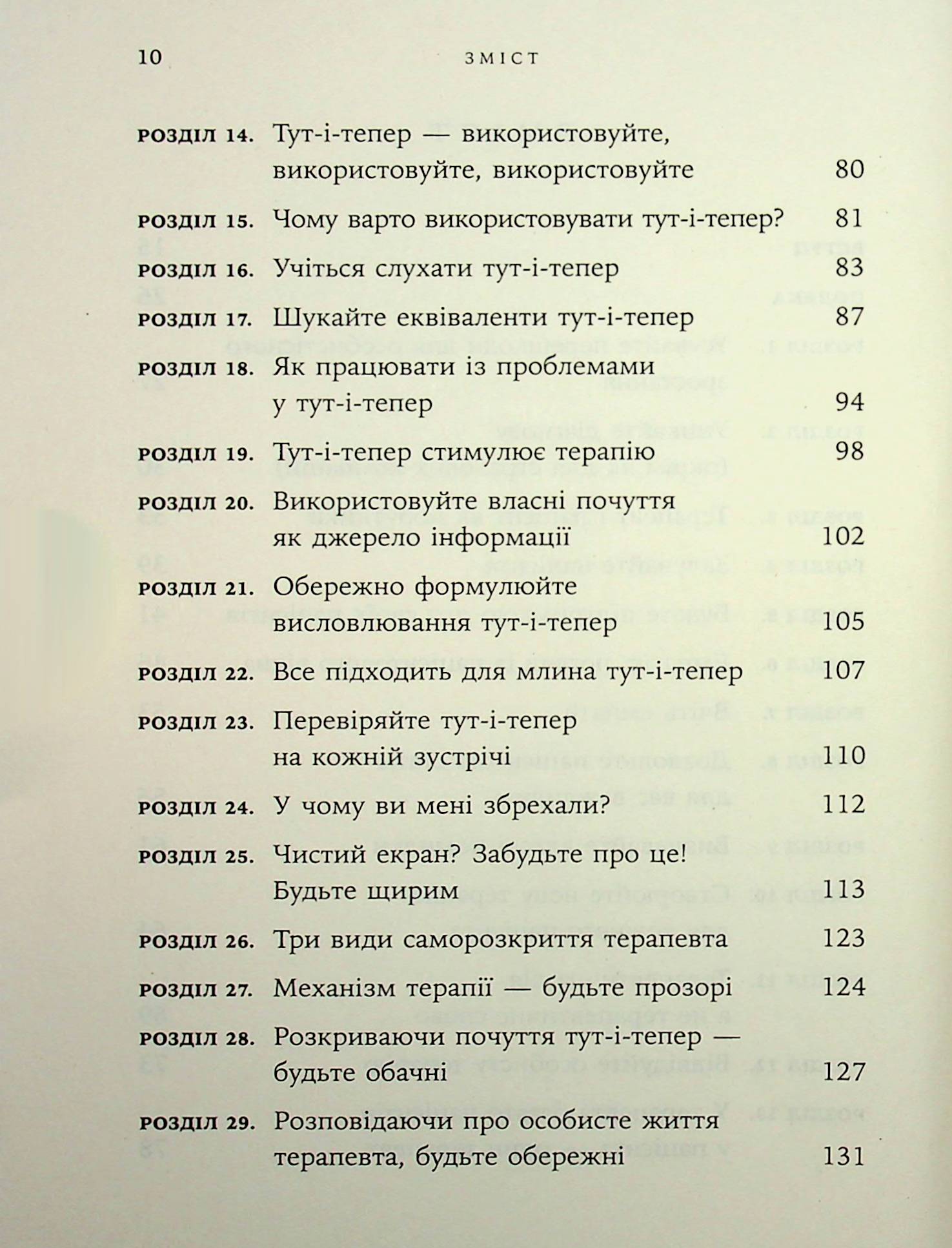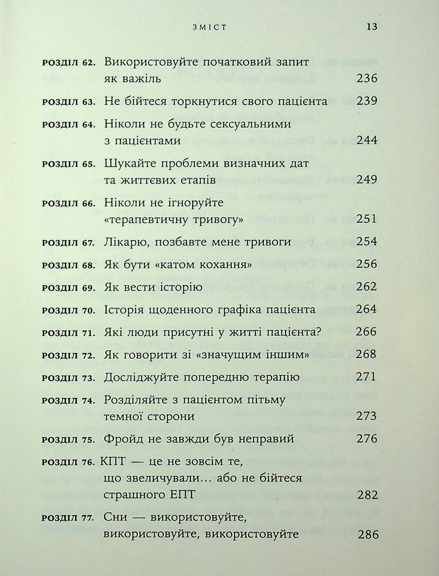 Книга адресована насамперед майбутнім психологам і початківцям-психотерапевтам. У ній зібрано 85 порад — простих і водночас глибоких, особистих і часом провокаційних. Вони допомагають новачкам у професії позбутися невпевненості та отримати практичні орієнтири для роботи з клієнтами.
