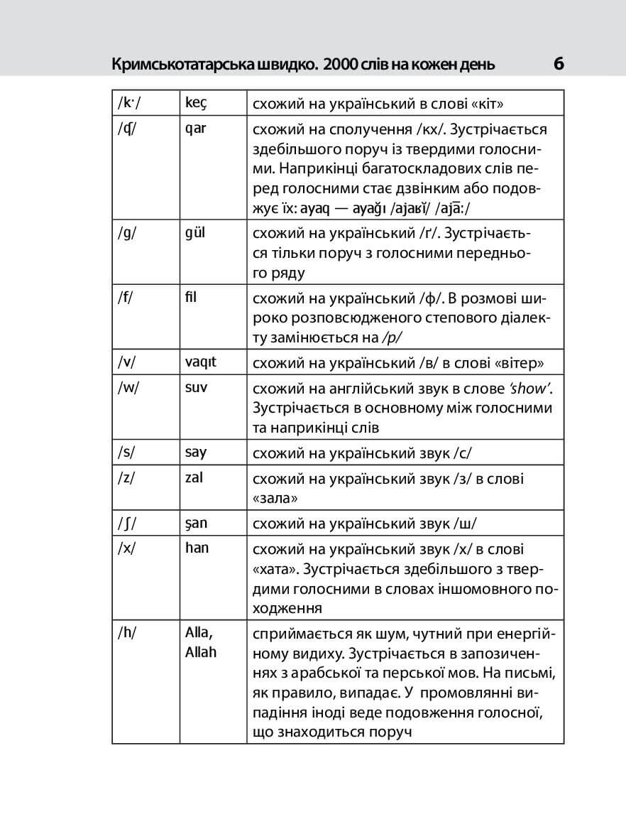 Посібник буде корисний тим, хто вивчає кримськотатарську мову з початкового рівня. Він містить матеріал в межах розповсюджених тем спілкування як підлітків, так і дорослих співрозмовників. Весь лексичний матеріал посібника супроводжується перекладом українською мовою, що дає значні можливості працювати не тільки з допомогою вчителя, а й самостійно, легко контролюючи, наскільки добре ви запам’ятали значення слів і речень.