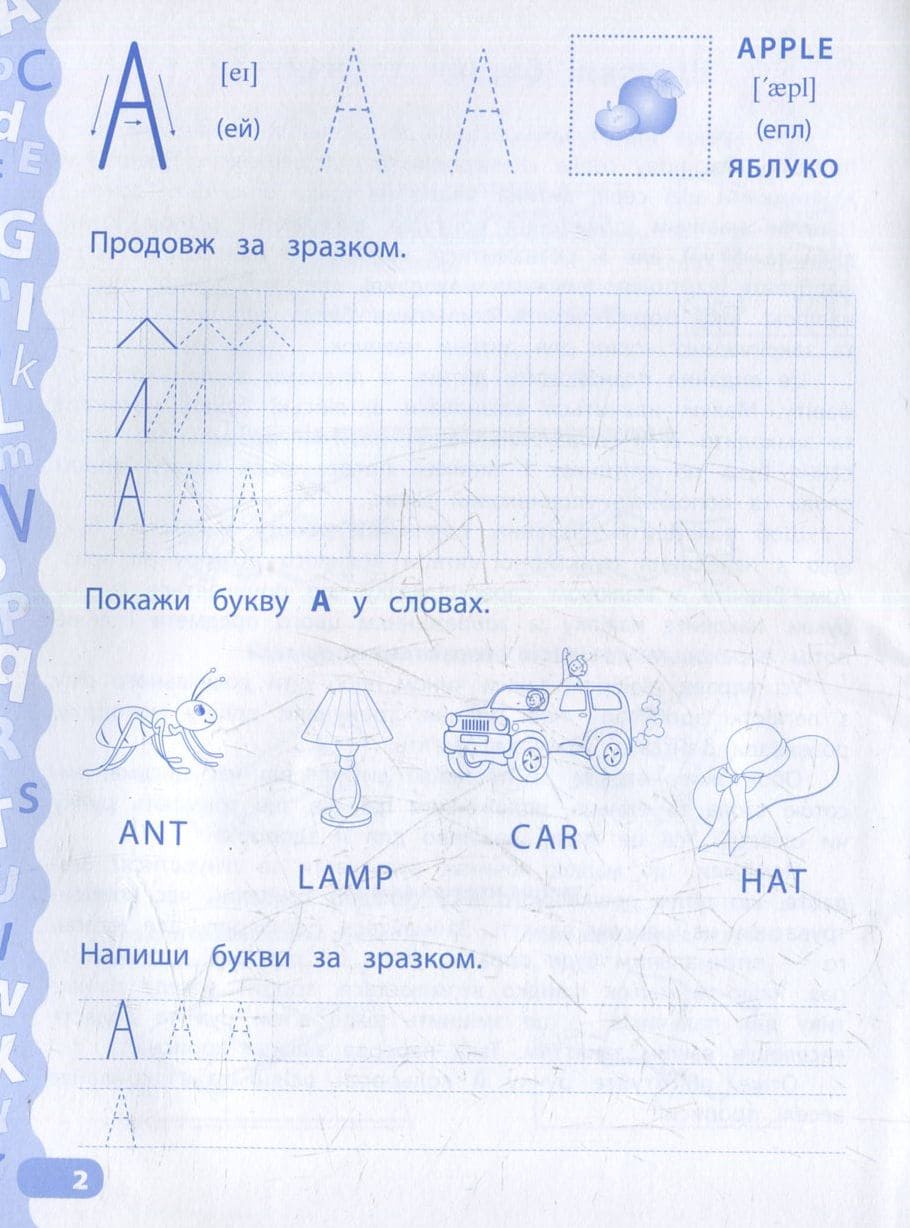 Книга Учимо та пишемо англійські букви. Прописи із завданнями та наліпками Катерина Смірнова